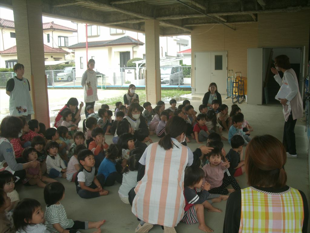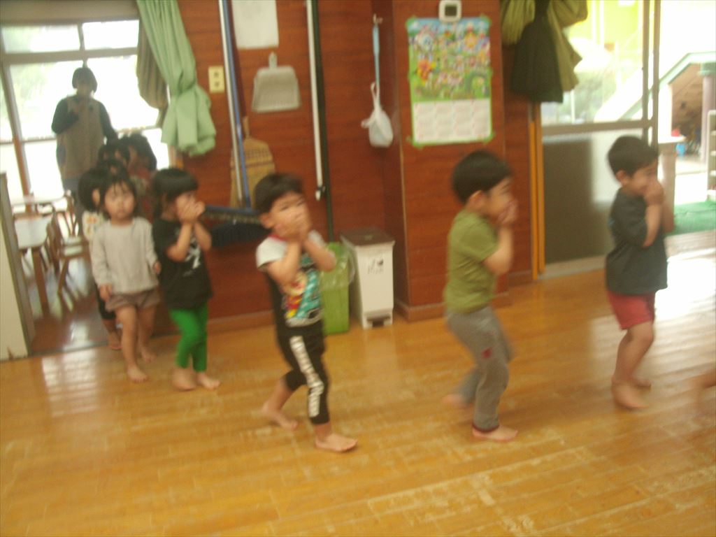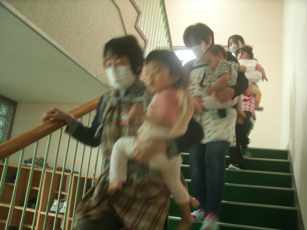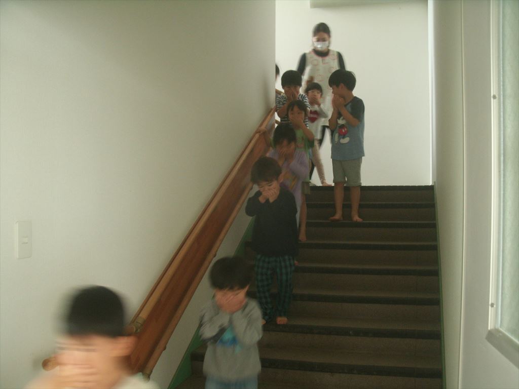 火事を想定し、煙を吸い込まないように手で鼻と口を覆い先生の指示のもと速やかに避難をしました。