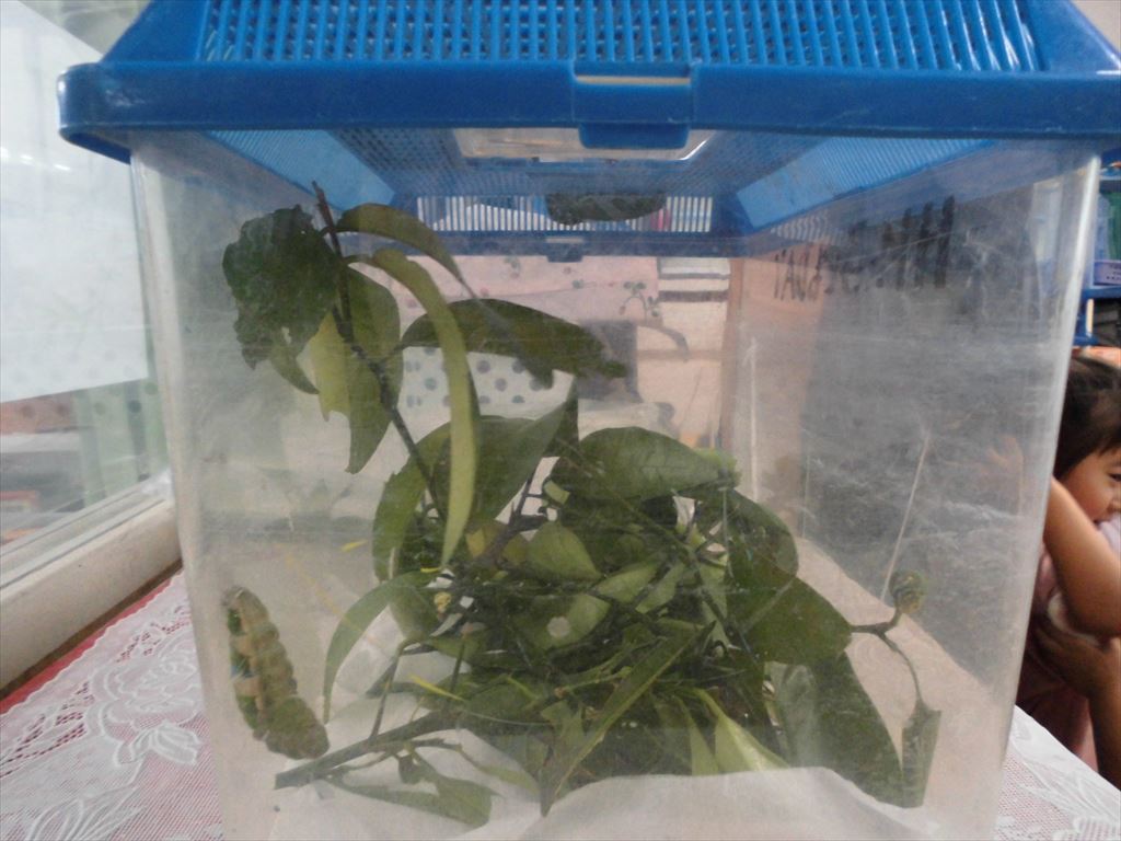 1日で様子が変化したあおむしに子供たちもびっくり😦