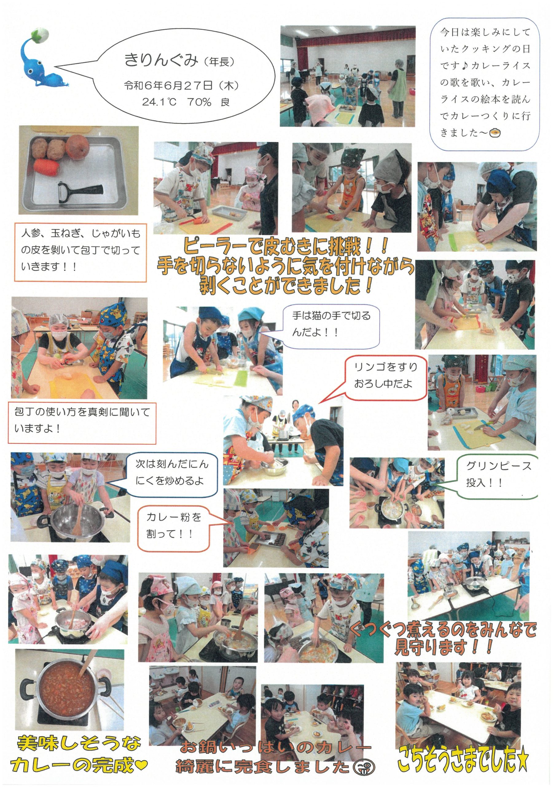 2024年6月27日(木) 年中年長さんはとっても楽しみにしていたクッキングの日でした。