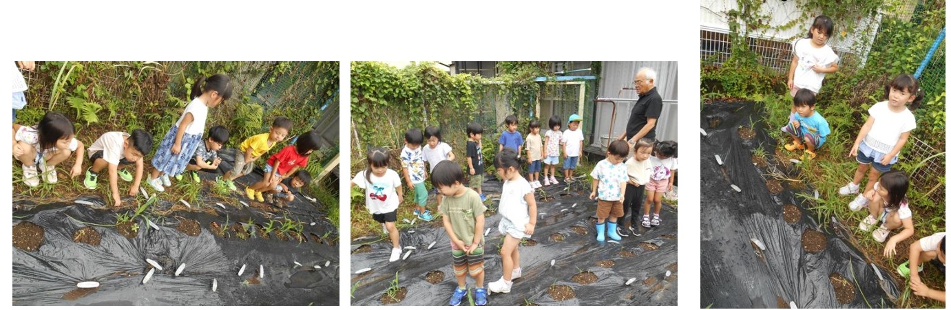 園長先生に教えてもらいながら、栄養がいきわたるように間引きをしました。