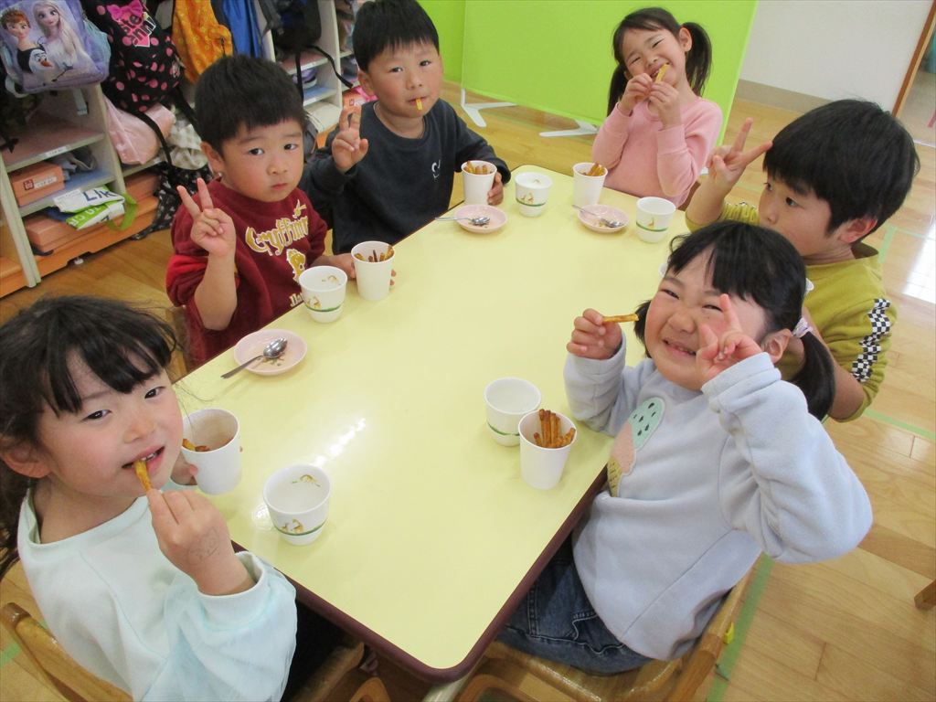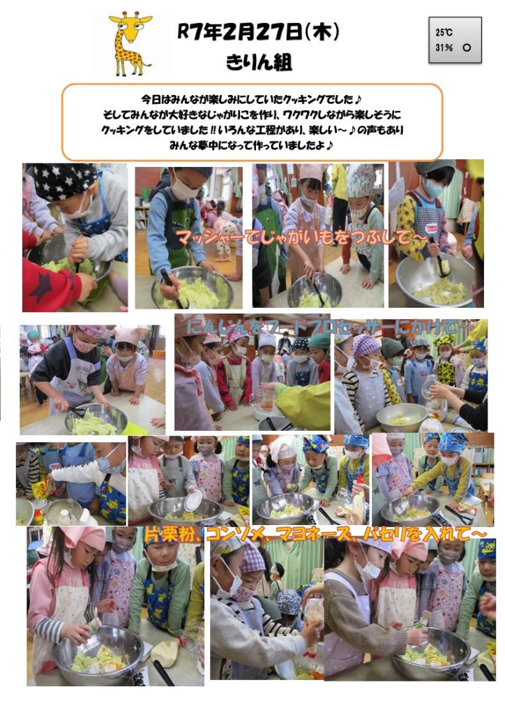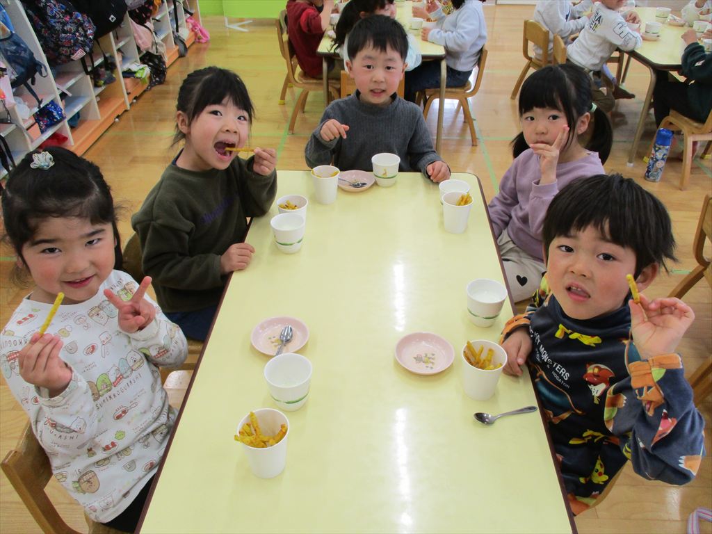 2025年2月27日(木) 年中さんはクッキングで「じゃがりこ」を作りました!
