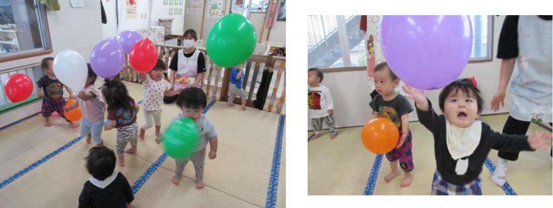 0,1歳児さんは風船遊びをしました。